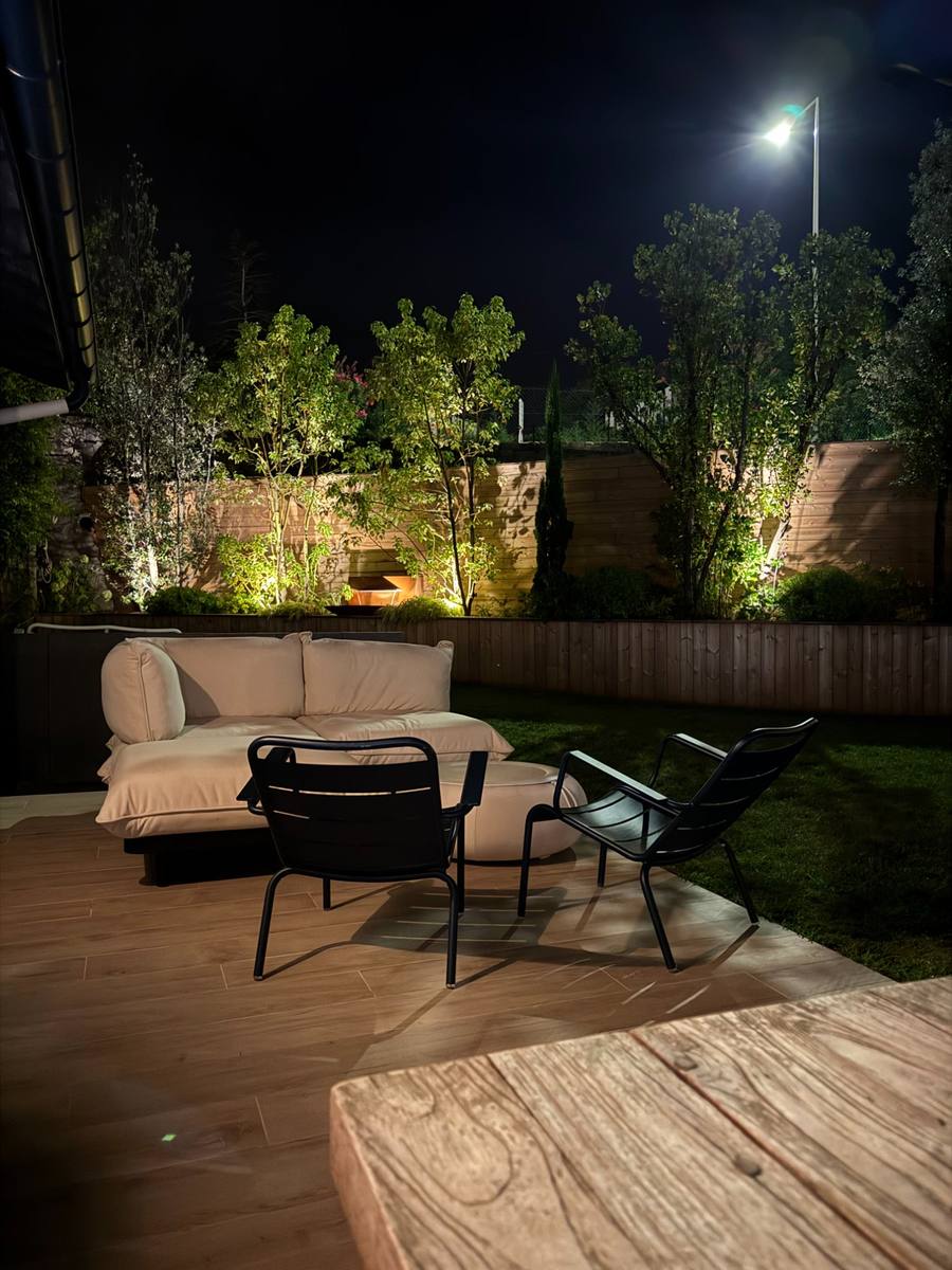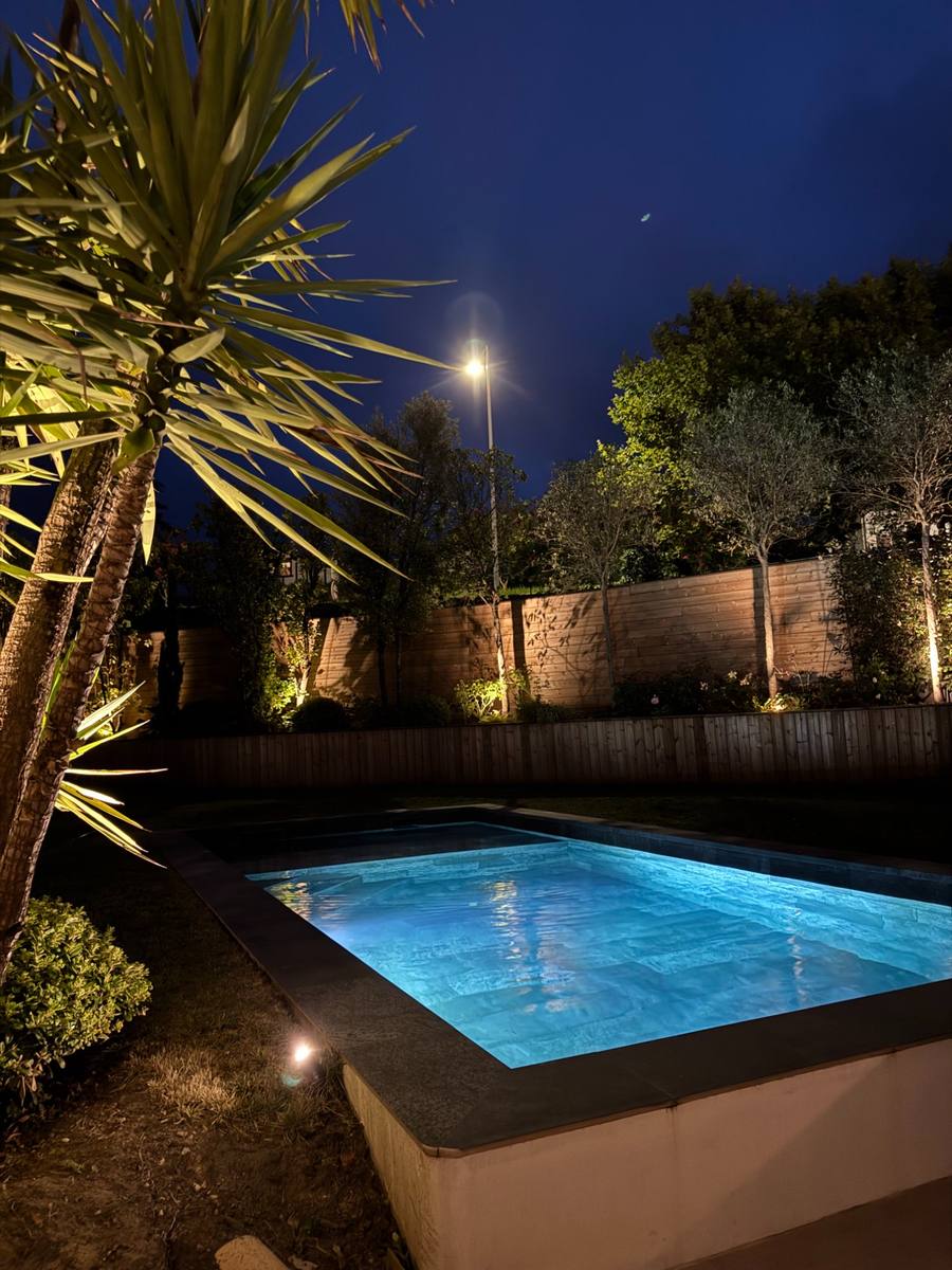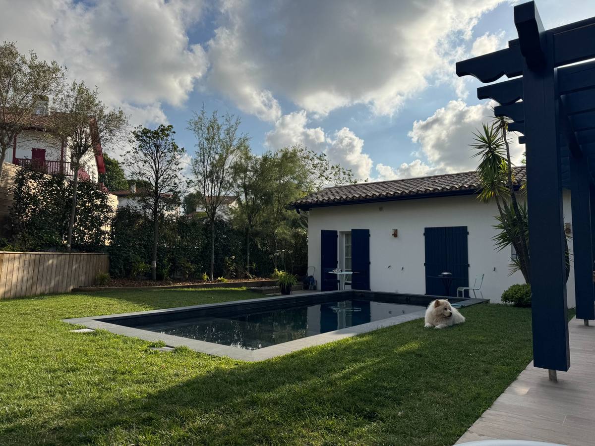 Le jardin suit le rythme du lever et du coucher du soleil pour une ambiance naturelle. La piscine chauffée, la pergola motorisée et la cuisine d'été font de cet espace un véritable lieu de vie.