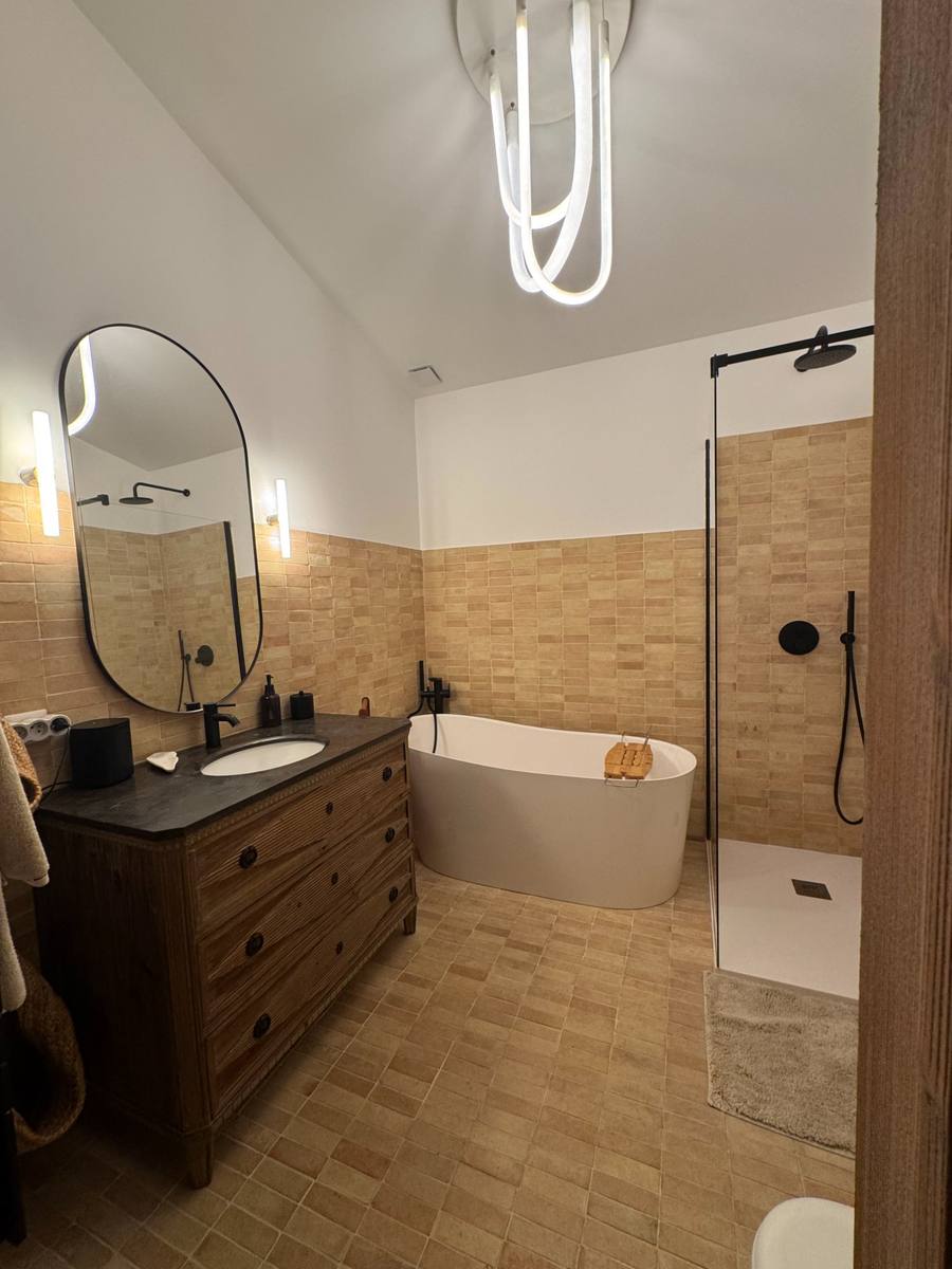 La maison dispose de 4 chambres, 4 salles de bain et 5 toilettes, avec une piscine extérieure chauffée et une cuisine d'été pour profiter pleinement des beaux jours.